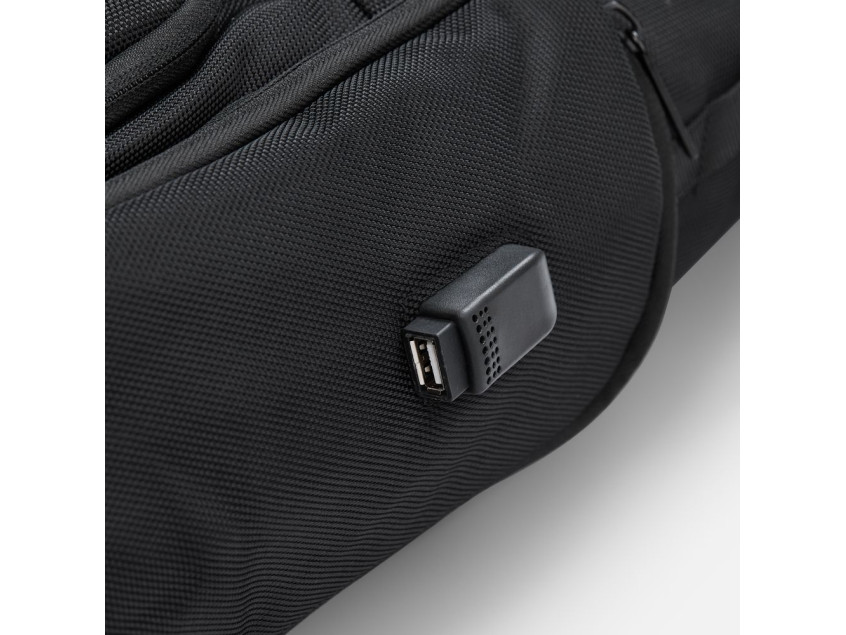 Специально для вещей, которые должны быть всегда под рукой, предусмотрен накладной карман с фиксацией по бокам. А благодаря внешнему USB-порту можно заряжать смартфоны, планшеты и другие устройства прямо на ходу.