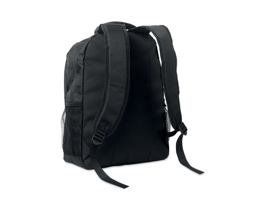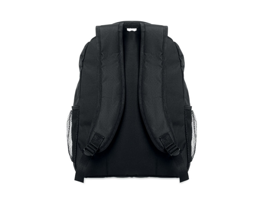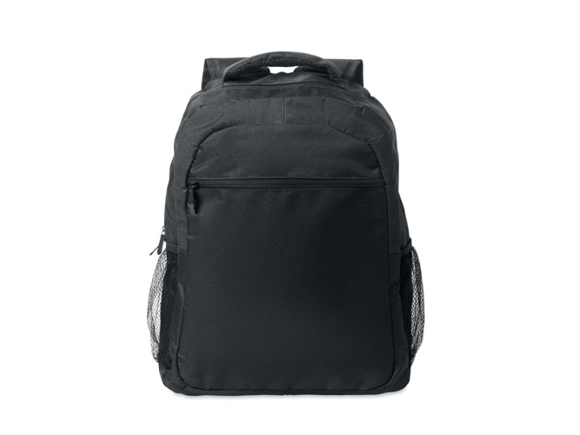Рюкзак для ноутбука 15 дюймов из переработанного полиэстера 600D RPET с мягким отделением для ноутбука внутри, сетчатыми карманами по обеим сторонам и передним карманом на молнии.