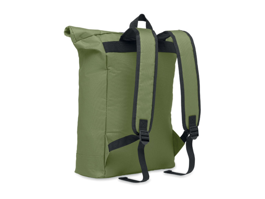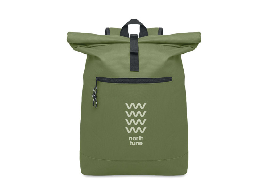 Рюкзак для ноутбука 15 дюймов из полиэстера 600D с застежкой ролл-топ, мягкой спинкой и усиленным дном. Передний карман на молнии. Подкладка из материала 210D.