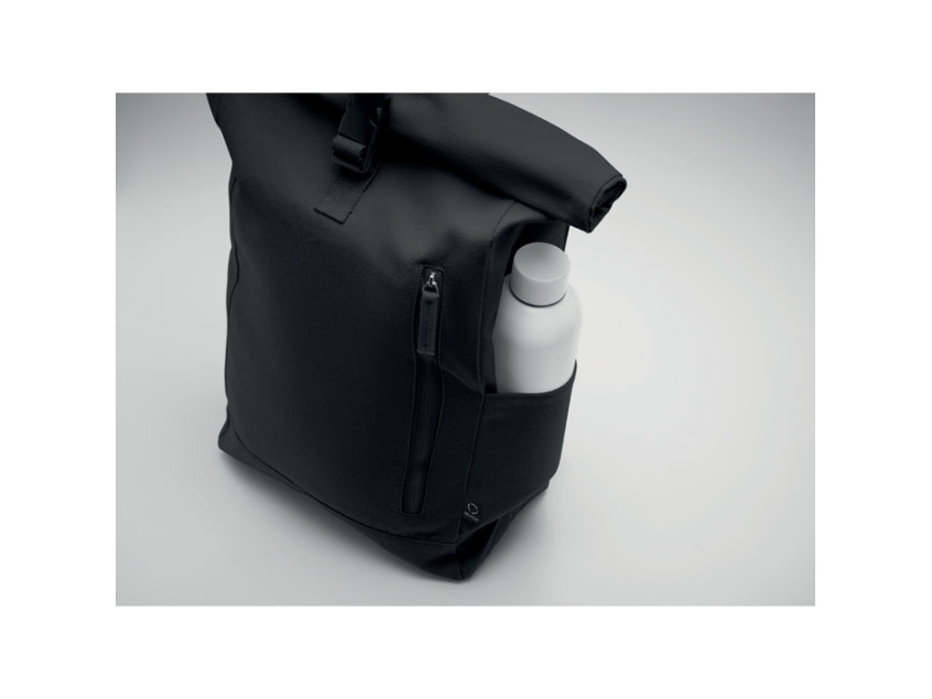 Этот рюкзак создан для тех, кто ценит экологичность и стиль. Он изготовлен из переработанного хлопка и полиэстера, что делает его не только модным, но и ответственным выбором. Плотность материала 390 гр/м² обеспечивает долговечность и устойчивость к износу, а черный цвет добавляет универсальности, делая его идеальным спутником для любого образа. Застежка Rolltop не только придает рюкзаку современный вид, но и позволяет регулировать объем, что особенно удобно, если вам нужно взять с собой больше вещей.