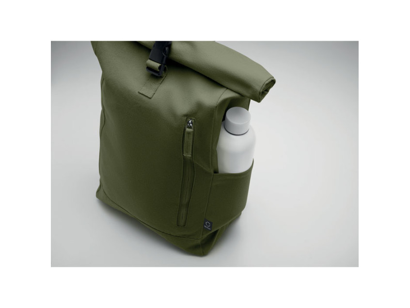 Представьте, как вы идете по городу, чувствуя легкий вес рюкзака на плечах. Его материал — переработанный хлопок и полиэстер — не только приятен на ощупь, но и напоминает о вашем вкладе в сохранение окружающей среды. Плотность ткани 390 гр/м² обеспечивает долговечность, а застежка Rolltop добавляет современный штрих и позволяет регулировать объем в зависимости от ваших нужд. Передний карман на молнии — это удобное место для мелочей, которые всегда должны быть под рукой.
