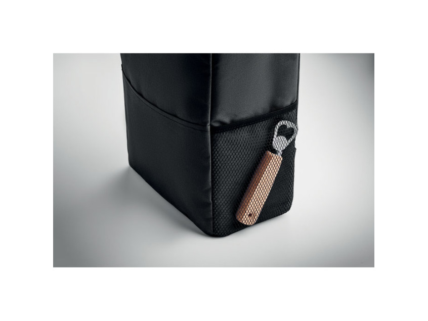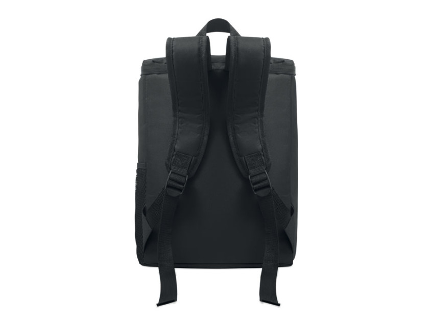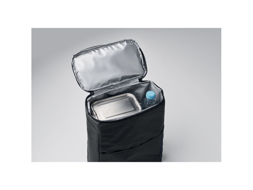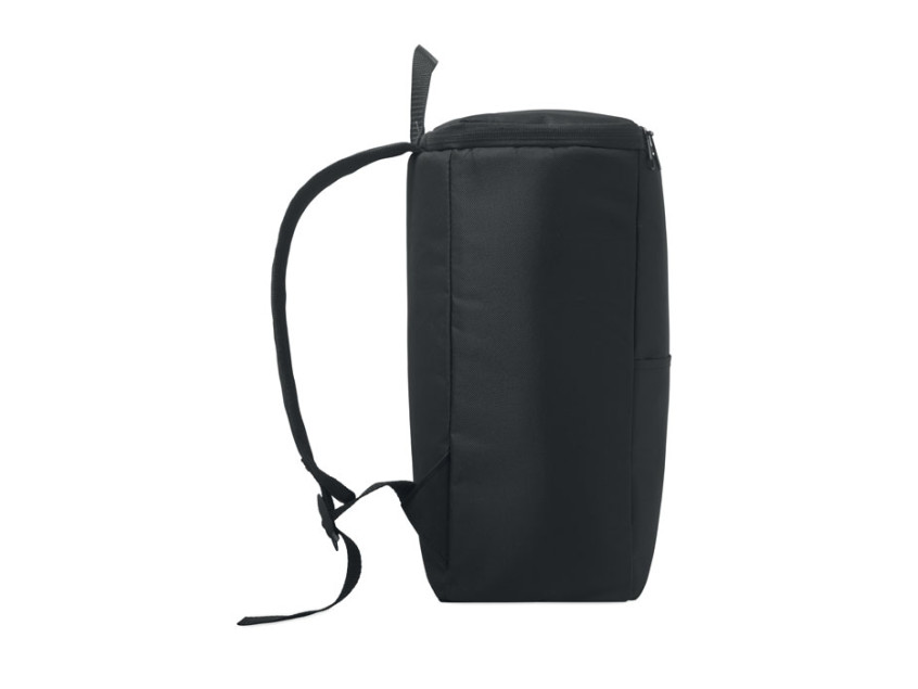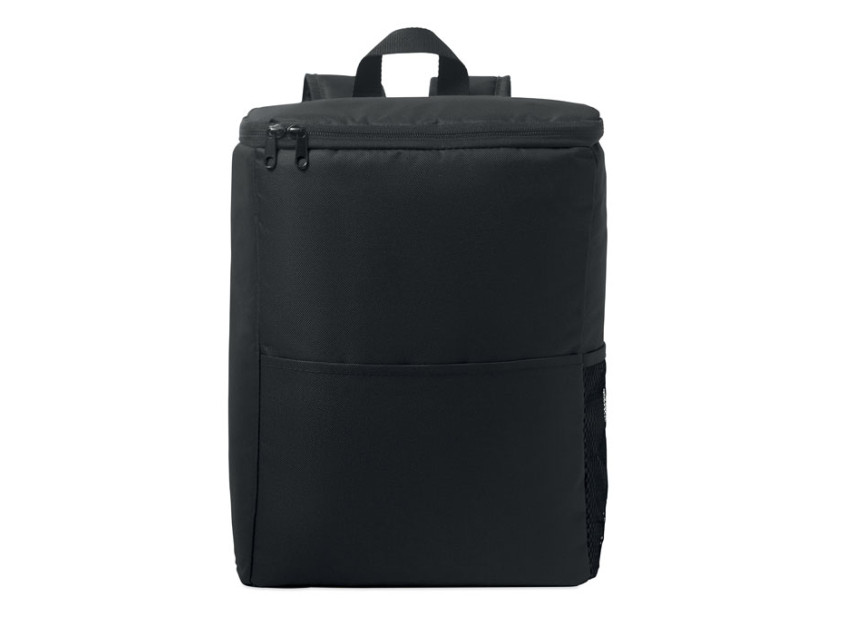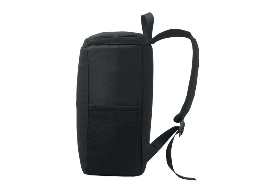 Рюкзак-кулер из полиэстера RPET 600D с мягким регулируемым плечевым ремнем, боковым сетчатым карманом на молнии и передним карманом. Подкладка из PEVA и пенополиэтилена толщиной 13 мм. Объем 11 л.