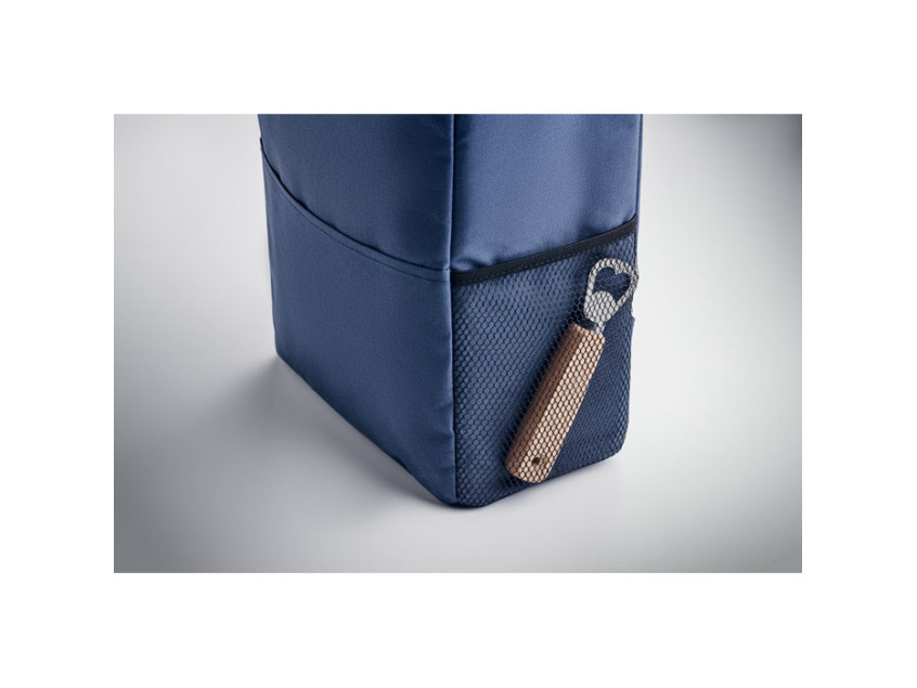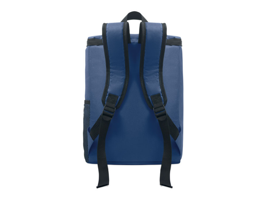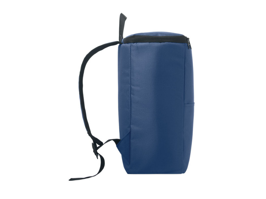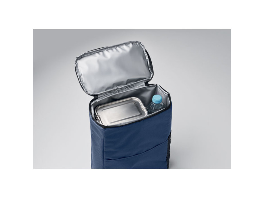 Рюкзак-кулер из полиэстера RPET 600D с мягким регулируемым плечевым ремнем, боковым сетчатым карманом на молнии и передним карманом. Подкладка из PEVA и пенополиэтилена толщиной 13 мм. Объем 11 л.