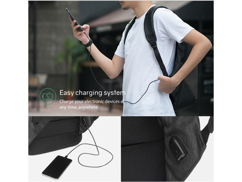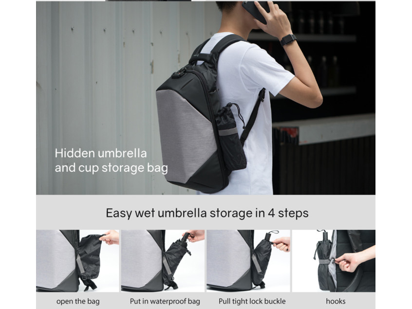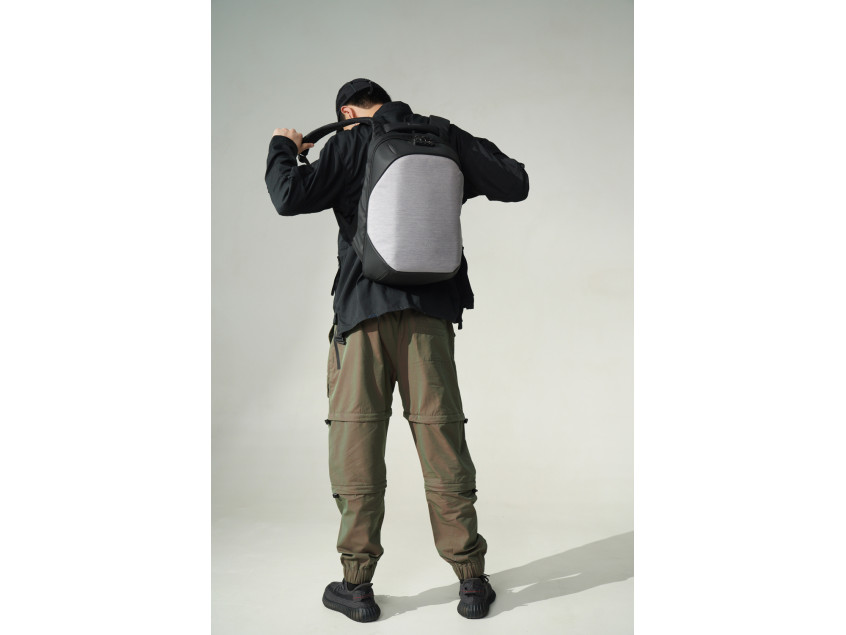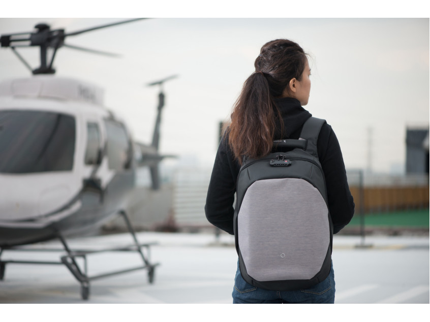 Вместительный рюкзак для путешественников ClickPack из комбинации светло-серого и черного цветов, обладатель премий Good Design Award 2017, Red Dot Design Award 2018, iF Design Award 2018, International Design Excellence Award. Размер рюкзака 46х34х16 см, объем 17,3 л, вес 1040 гр. Сделан из прочного устойчивого к трению водоотталкивающего многослойного полиэстера, с двухслойной защитой от дождя и не требующего специального ухода. Конструкция достаточно жесткая, не деформируется. Детально продуманная организация отделений позволяет грамотно распределить вес. Самые тяжелые предметы располагаются ближе к спине, например, в отделении размером 35х27,5х3 см для ноутбука диагональю до 15,6” и в кармане размером 13,5х25 см для планшета диагональю до 10”. Благодаря плотным перегородкам и эластичным фиксаторам ноутбук и планшет надежно фиксируются и не перемещаются при ходьбе. Специальная анатомическая конструкция и вентилируемая мягкая спинка снижают нагрузку на плечи и спину, вес рюкзака воспринимается на 20-25% легче, чем при использовании стандартных моделей рюкзаков. Конструкция рюкзака позволяет раскрыть его на 180°, чтобы аккуратно уложить в рюкзак много различных предметов. Дополнительно в основном отделении расположены еще 8 карманов различного функционала. 6 открытых карманов под ручки и различные мелочи, 1 карман на молнии размером 9х16 см и карман на липучке для powerbank, в который приходит USB-кабель системы зарядки K EasyCharging, соединенный с USB-портом в борту на внешней стороне рюкзака для легкого подключения к смартфону. Рюкзак закрывается на двойную укрепленную молнию YKK, которую можно зафиксировать с помощью кодового замка TSA007 с функцией таможенного досмотра. Широкие и прочные лямки крепятся к небольшому тканевому борту, что позволяет рюкзаку как бы обхватывать вашу спину. В одном из бортов расположен USB-порт, а в другом - чехол для зонта или бутылки с водой, который при использовании фиксируется специальным креплением. На правой лямке рюкзака находится easy access карман размером 12х6 см на молнии, на левой - открытый карман 10х5 см. На внешней стороне рюкзака в стыке серого и черного цветов спрятался треугольный карман на молнии размером 16х9 см с застежкой фастекс для ключей, которая позволяет вам легко отстегнуть/пристегнуть ключи. На спинке рюкзака расположен внешний потайной карман размером 16х28 см на молнии. Для его защиты достаточно того, что он вплотную прилегает к вашей спине и вытащить что-то из него без снятия рюкзака невозможно. В дополнение к вышеперечисленным средствам защиты рюкзак ClickPack оснащен стальным тросом, которым можно обхватить неподвижный предмет и затем зафиксировать в кодовом замке. Сверху расположена ручка, за которую при необходимости удобно нести рюкзак в руках или закрепить на выдвижной ручке чемодана. На углах рюкзака размещены светоотражающие элементы, которые в темное время суток равномерно отсвечивают практически на 360° и делают вас заметными на расстоянии до 100 метров.