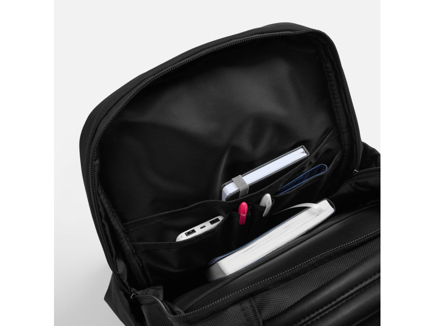 Специальное отделение на молнии с мягкими стенками надежно фиксирует ноутбук, защищая его от ударов и повреждений во время переноски. Основное отделение оснащено удобной панелью‑органайзером, позволяющей структурированно разместить документы и другие необходимые предметы.