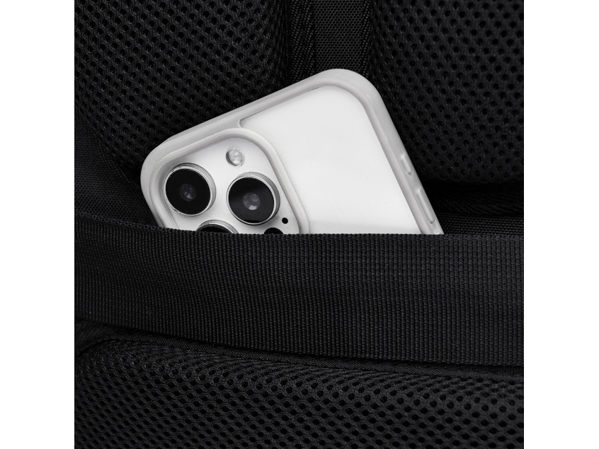 Двойное уплотнение анатомических накладок на задней стенке распределяет его вес и снижают нагрузку на позвоночник. Гигроскопичная вентилируемая трехслойная 3D-сетка на накладках задней стенки и подкладке плечевых ремней предотвращает скольжение и обеспечивает отличную вентиляцию и комфорт при контакте с кожей и одеждой.