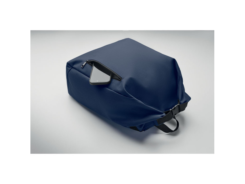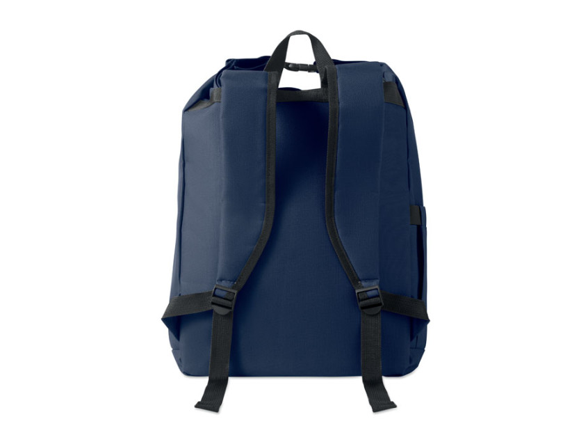 Рюкзак для ноутбука 15 дюймов из полиэстера RPET 600D с мягкой подкладкой из RPET 210D и застежкой ролл-топ. Имеет передний карман на молнии, эластичный боковой карман и регулируемые плечевые ремни.