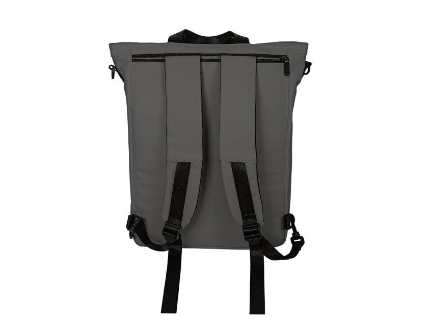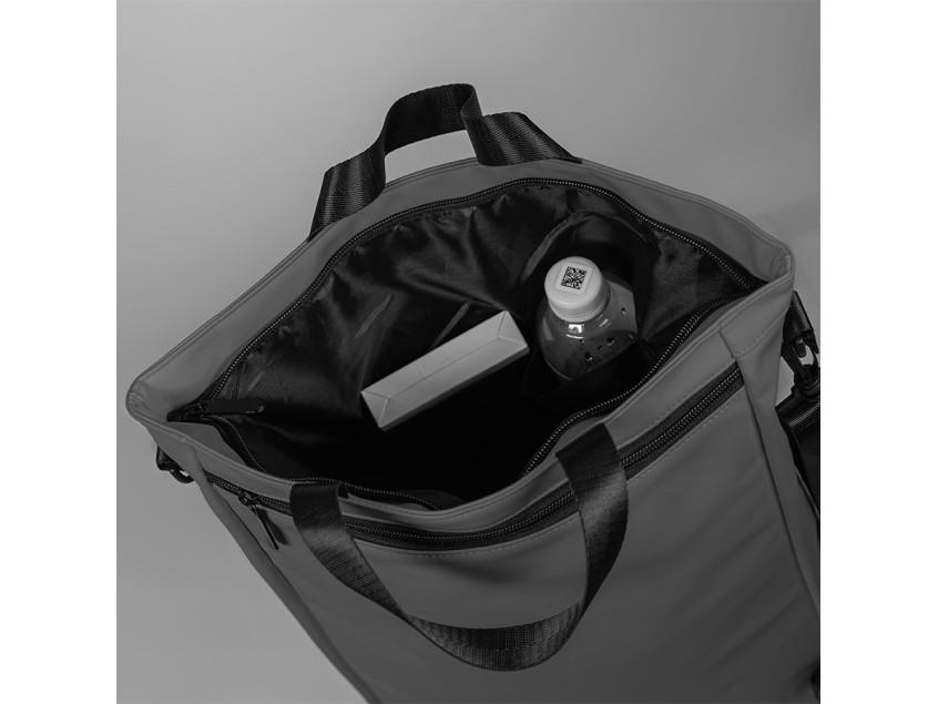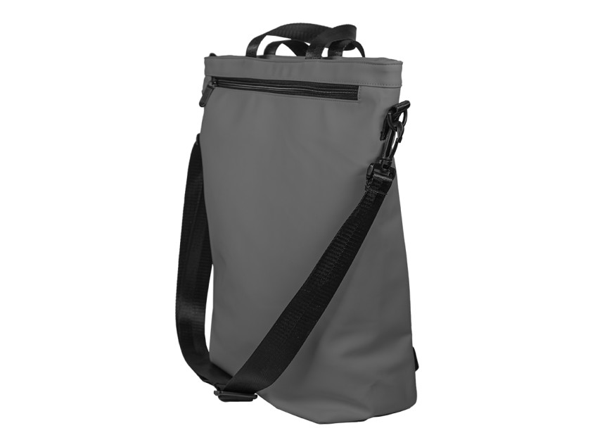 Рюкзак-сумка из 100% полиуретана. Можно использовать как сумку через плечо, можно носить как рюкзак. Лямки можно спрятать в карман. Ручка отстёгивается. Объём 15 литров.