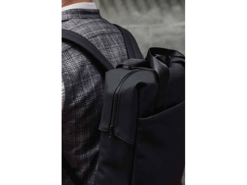 Удобный и стильный рюкзак-тоут станет незаменимым помощником на каждый день. Широкая застежка-молния обеспечивает легкий доступ для размещения ноутбука и других ценных вещей. Специальный багажный ремень на спинке позволяет закрепить рюкзак на чемодане для удобства в путешествии. Есть большой передний карман, внутренний органайзер и практичный держатель для бутылки. Сертифицировано по стандарту RCS (Recycled Claim Standard), что гарантирует подтвержденную цепочку поставок переработанных материалов. Содержание переработанных материалов рассчитывается на основе общего веса изделия. Данный товар содержит 19% переработанного полиэстера, сертифицированного RCS. Объем рюкзака: 18 л.