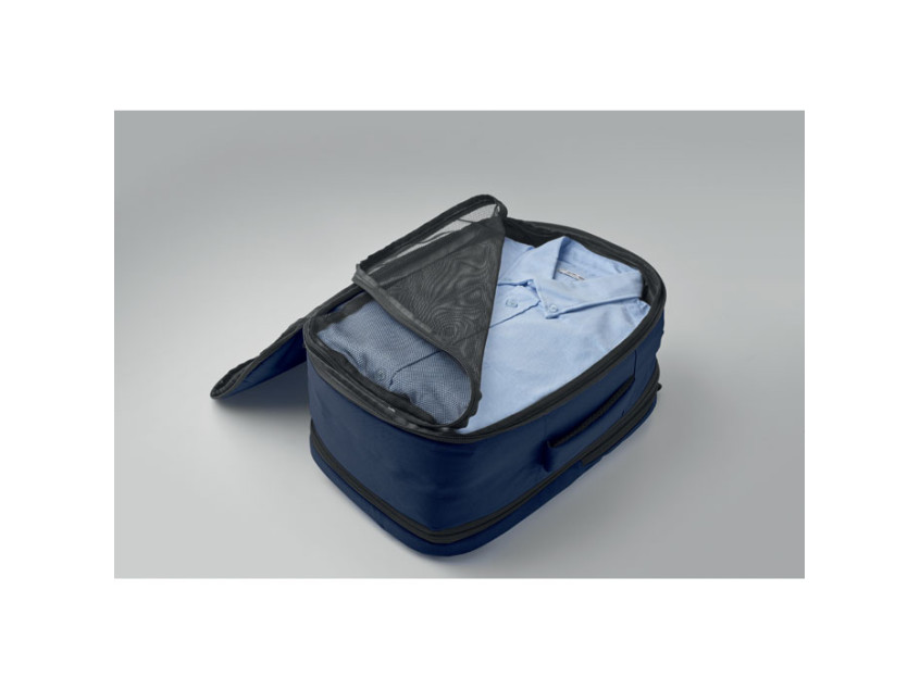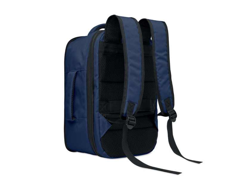 Рюкзак-трансформер для ручной клади из полиэстера RPET 600D. Имеет основное отделение с двумя открытыми секциями, сетчатую перегородку, мягкий карман для 15-дюймового ноутбука и багажный ремень.