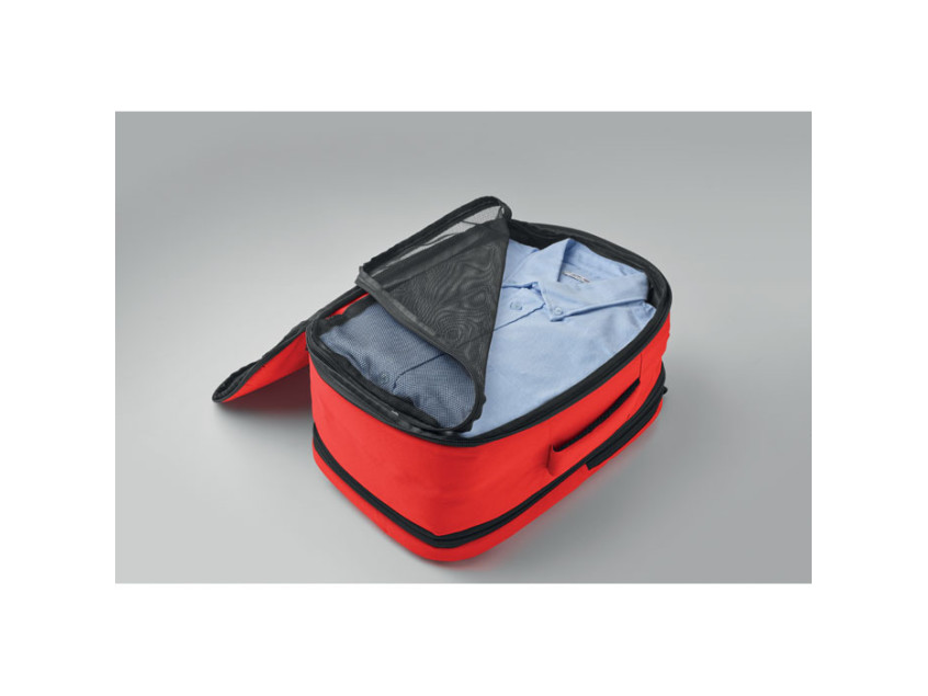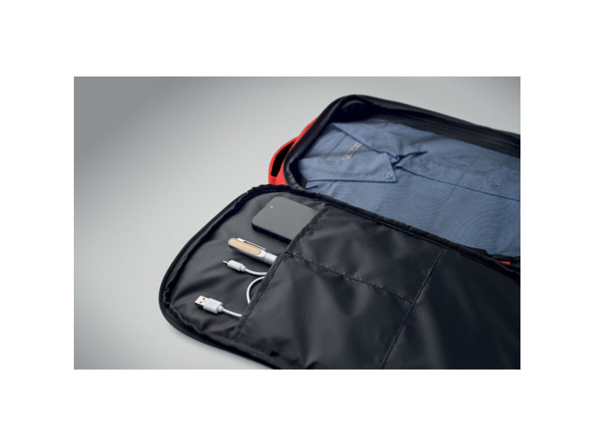 Рюкзак-трансформер для ручной клади из полиэстера RPET 600D. Имеет основное отделение с двумя открытыми секциями, сетчатую перегородку, мягкий карман для 15-дюймового ноутбука и багажный ремень.