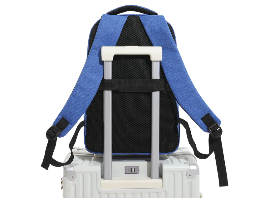 Специальная накладка для чемодана на задней стенке делает этот рюкзак незаменимым спутником для путешествий.