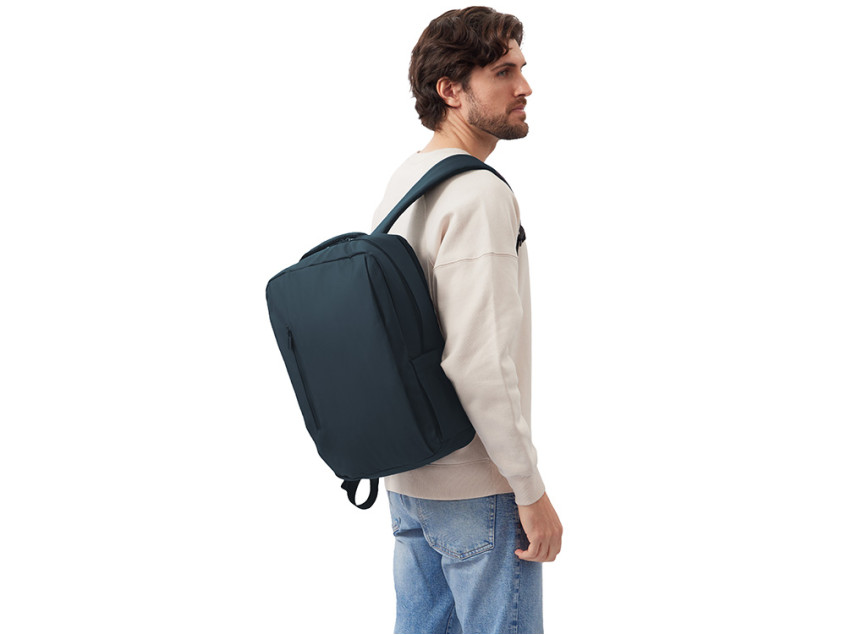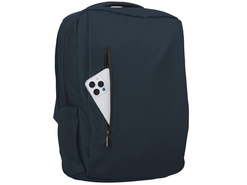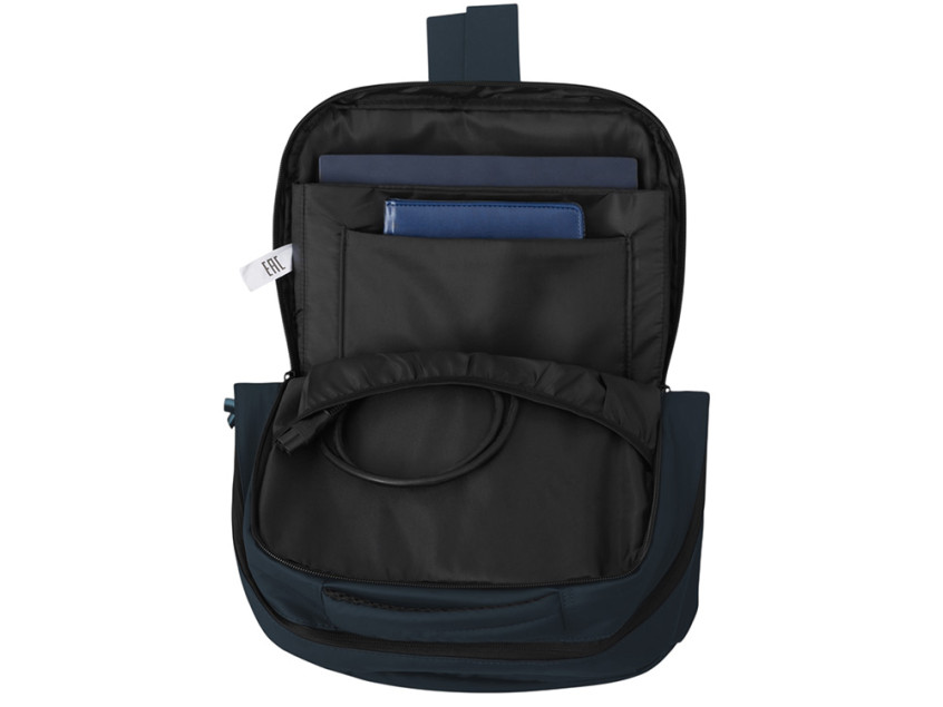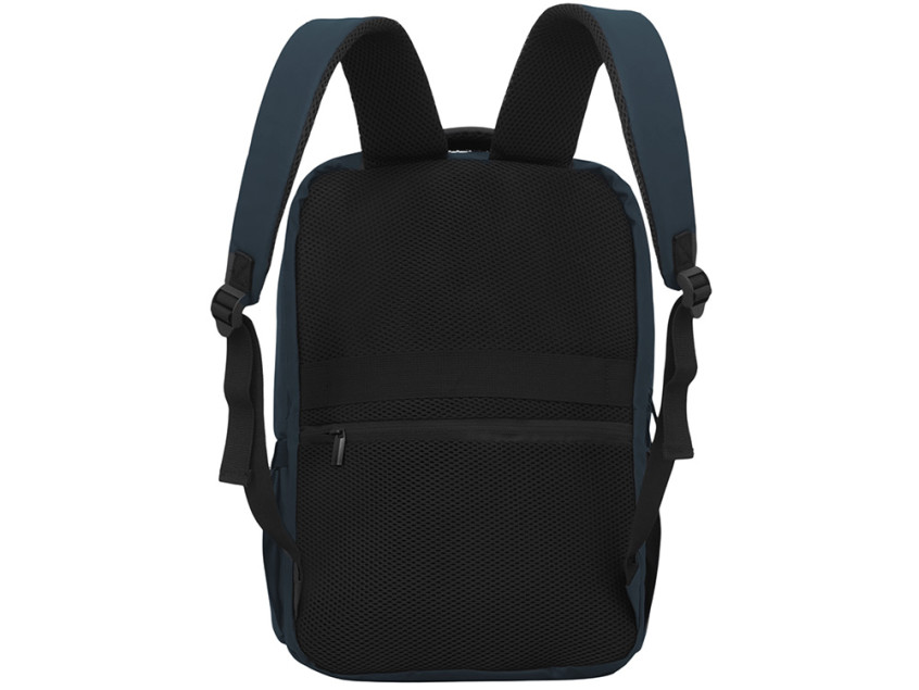 Непромокаемый бизнес рюкзак с двумя вместительными отделениями и карманом на молнии спереди. В одном отделении расположены карман для ноутбука и планшета, в другом органайзер и много пространства для одежды и других вещей на случай деловой поездки. На сетчатой спинке расположен потайной кармана на молнии для документов и личных вещей и ремень для крепления на ручку чемодана. Сверху удобная мягкая ручка для переноски. Лямки регулируются по длине.