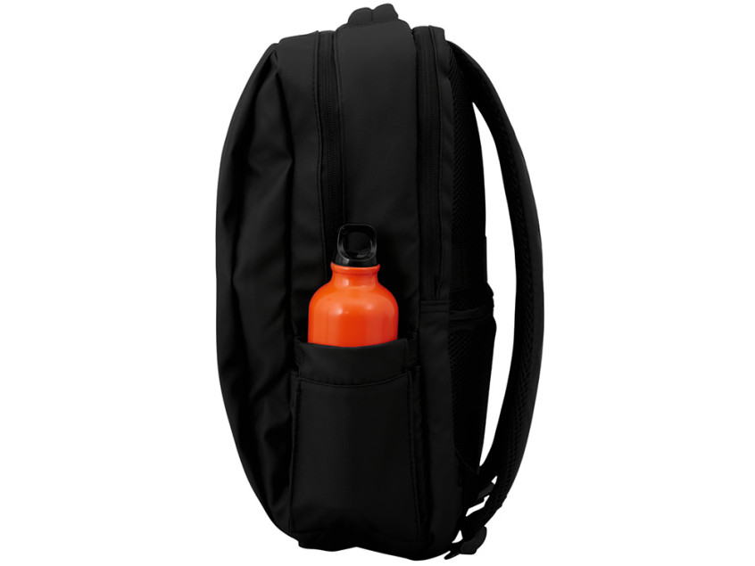 Непромокаемый бизнес рюкзак с двумя вместительными отделениями и карманом на молнии спереди. В одном отделении расположены карман для ноутбука и планшета, в другом органайзер и много пространства для одежды и других вещей на случай деловой поездки. На сетчатой спинке расположен потайной кармана на молнии для документов и личных вещей и ремень для крепления на ручку чемодана. Сверху удобная мягкая ручка для переноски. Лямки регулируются по длине.