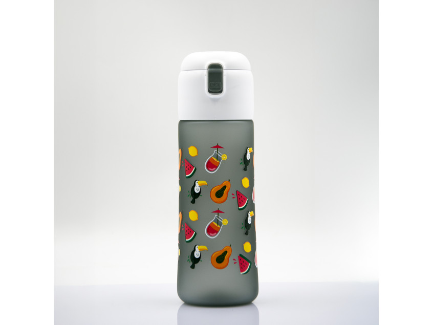 - Откидная крышка с кнопкой: интуитивно понятный механизм открывания одной рукой, который удобно использовать, когда вы в движении, а наличие фильтра-ситечка позволит добавить различные ягоды или фрукты - кусочки не будут попадать в питьевое горлышко.