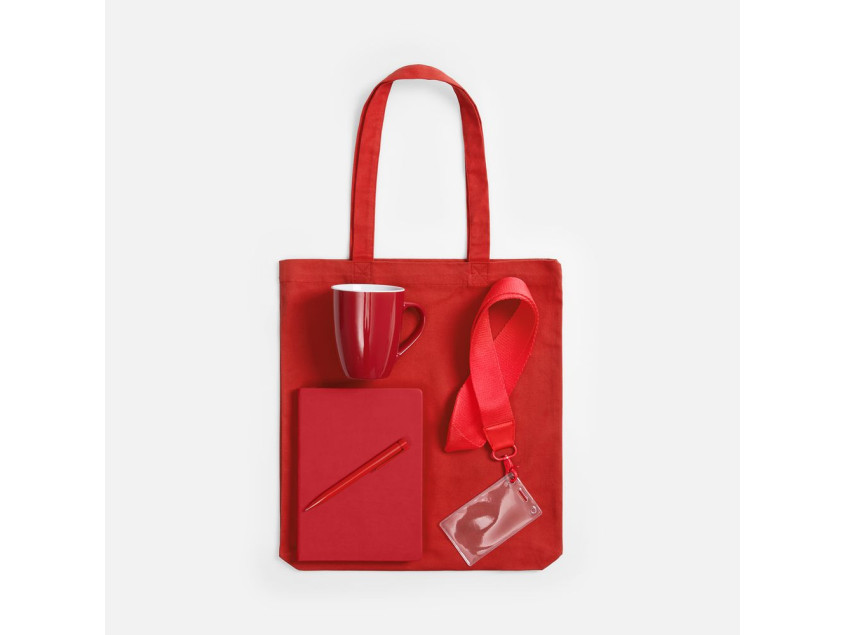 Ежедневник с твердой обложкой и тонированным обрезом. Выполнен из материала Latte, красный, дополнен..