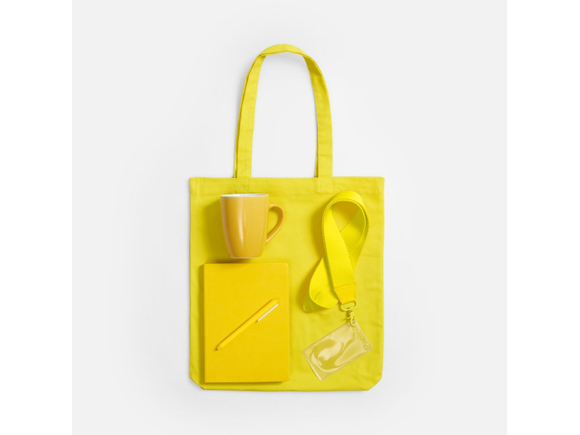 Ежедневник с твердой обложкой и тонированным обрезом. Выполнен из материала Latte, желтый, дополнен ..