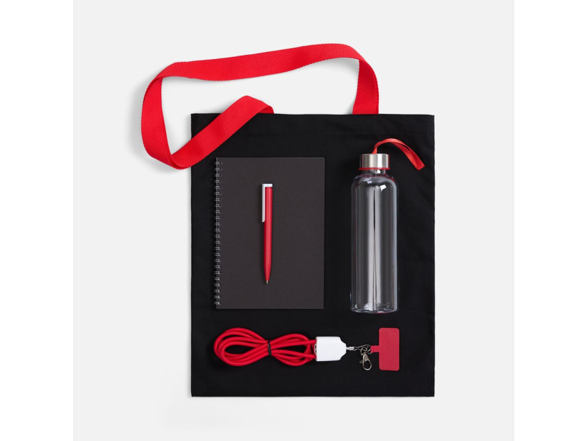 | Материал: | сумка - хлопок, 240 г/м²; ручки - полиэстер; кабель-ланьярд - нейлон, пластик; металл; бутылка - пластик, пищевой; крышка - металл, пластик; блокнот - бумага, картон; ручка - пластик |