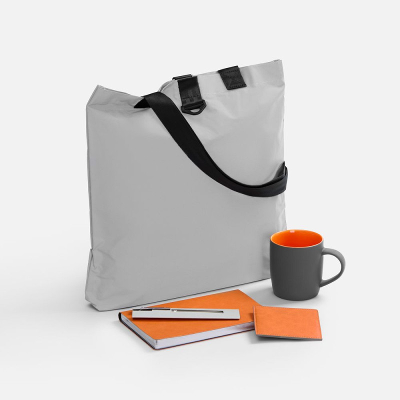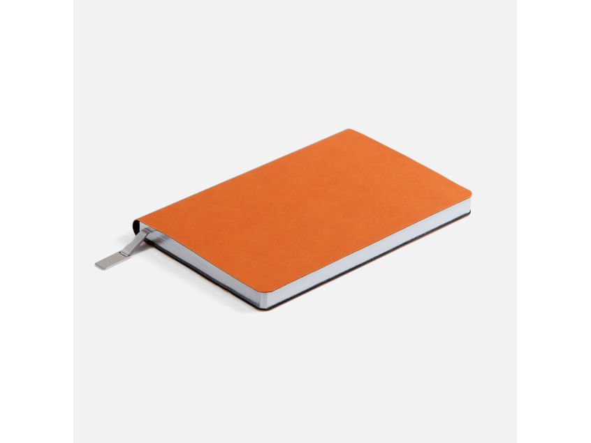 Ежедневник с гибкой обложкой, выполнен из материала Petrus, оранжевый ОО, дополнен серым ляссе с мет..