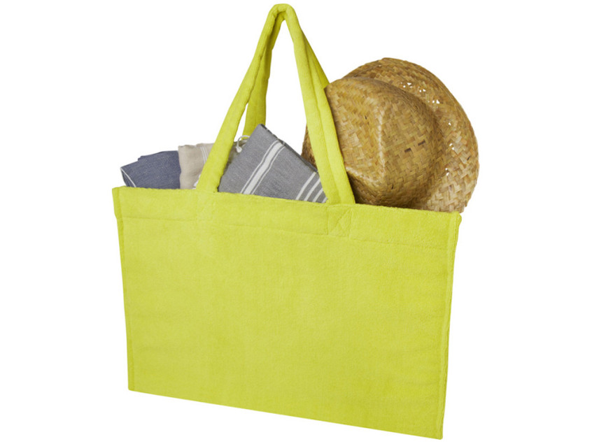 Мягкая, стильная и универсальная, эко-сумка Siam из переработанной махровой ткани станет идеальным спутником на лето. Изготовлена из мягкой махровой ткани, сертифицированной GRS (88% переработанного полиэстера, 12% полиамида), сумка обеспечивает уют и легкость, и идеально подходит для прогулок в теплую погоду. Эко-сумка имеет откидную ручку длиной 27 см для удобства переноски и вместительное отделение объемом 13 литров, что делает ее одновременно практичной и элегантной. Независимо от того, направляетесь ли вы на пляж, прогуливаетесь по городу или занимаетесь делами, махровая сумка Siam добавит непринужденный, но изысканный штрих к любому образу. 88% GRS certified recycled polyester, 12% Polyamide.