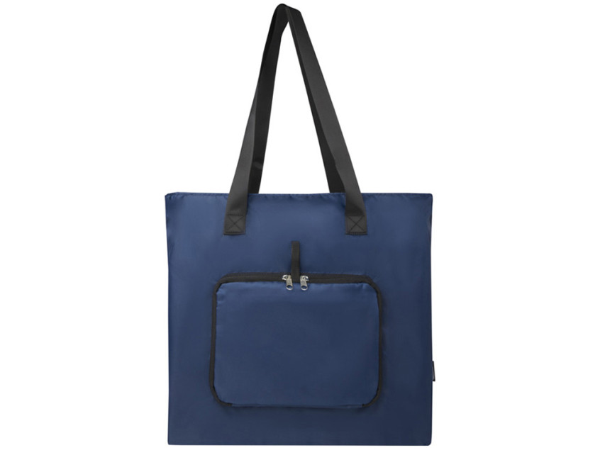 Эта легкая, но прочная эко-сумка, созданная для удобства и практичности, легко складывается в компактный мешочек с плетенной петлей, которую можно повесить или носить с собой. Она идеально подходит для походов по магазинам или в качестве запасной сумки, которая всегда с собой. Имеет просторное основное отделение на молнии, передний карман на молнии и две длинные ручки из качественного гладкого тканого материала. Изготовлен из переработанного полиэстера без содержания ПВХ. Объем: 16 литр. GRS certified recycled polyester.