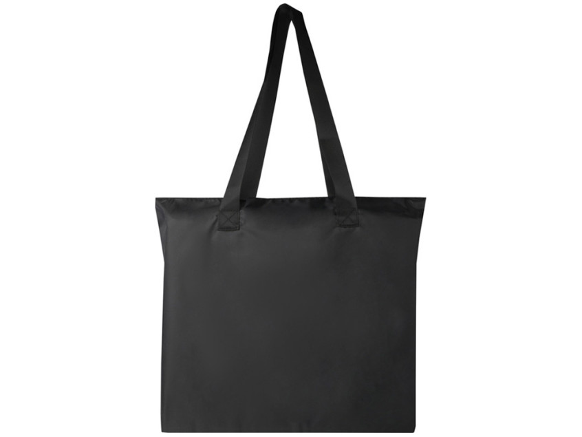 Эта легкая, но прочная эко-сумка, созданная для удобства и практичности, легко складывается в компактный мешочек с плетенной петлей, которую можно повесить или носить с собой. Она идеально подходит для походов по магазинам или в качестве запасной сумки, которая всегда с собой. Имеет просторное основное отделение на молнии, передний карман на молнии и две длинные ручки из качественного гладкого тканого материала. Изготовлен из переработанного полиэстера без содержания ПВХ. Объем: 16 литр. GRS certified recycled polyester.