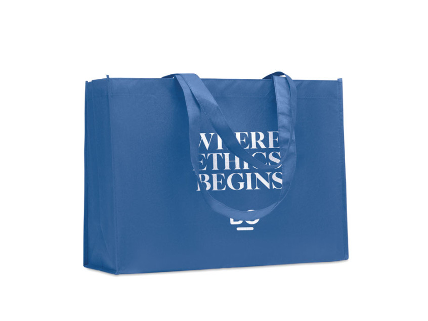 Представьте себе аксессуар, который сочетает в себе элегантность, практичность и заботу о планете. Сумка для покупок или пляжа из нетканого материала RPET — это не просто аксессуар, это ваш стильный спутник в повседневной жизни. Королевский синий цвет придает ей изысканный вид, который подчеркнет ваш вкус и индивидуальность.
