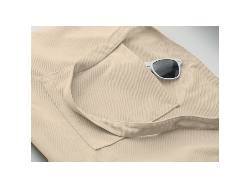 Большая вельветовая сумка для покупок/пляжная сумка из полиэстера с застежкой-молнией сверху, открытым передним карманом и внутренним карманом. 220 г/м².