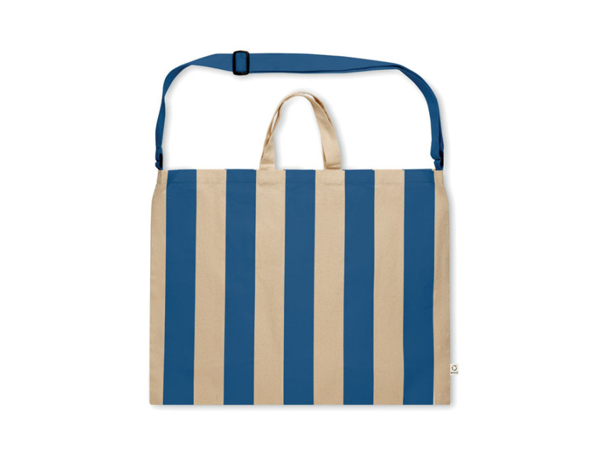 Почувствуйте дух лета с пляжной сумкой KM2555-37 — вашим идеальным спутником для отдыха, прогулок и стильных выходов. Эта сумка — не просто аксессуар, а настоящий символ свободы, легкости и заботы о природе. Ее дизайн в полоску королевского синего цвета словно вобрал в себя оттенки моря и неба, создавая настроение безмятежности и радости.