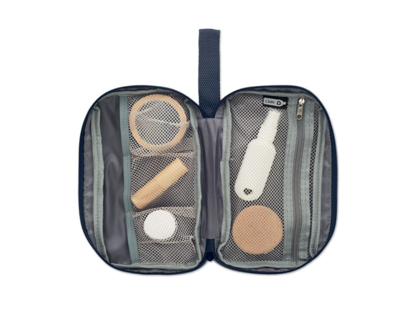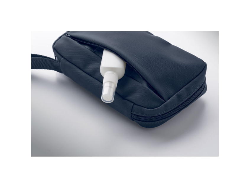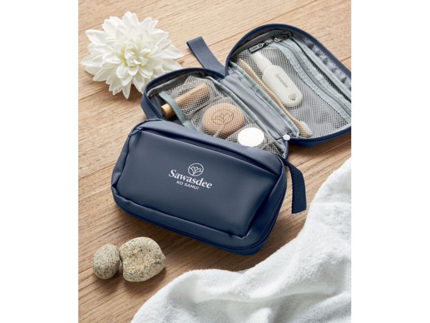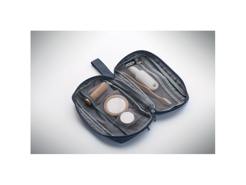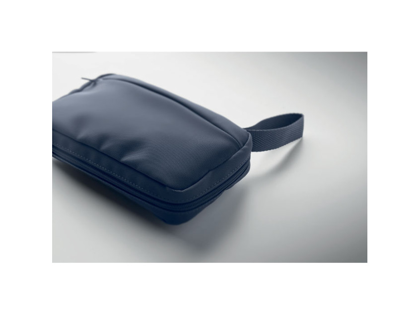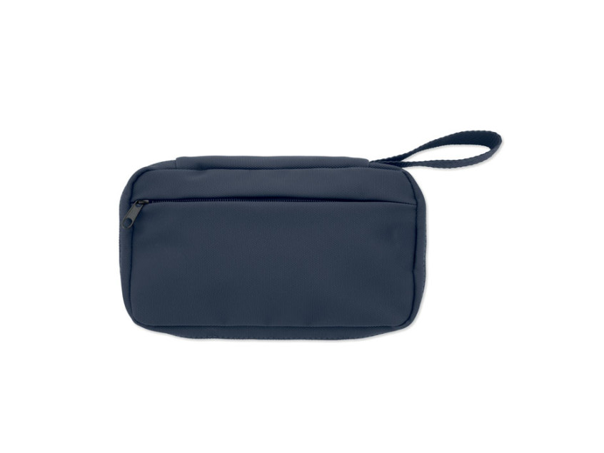 Косметичка из RPET 600D с полиуретановым покрытием. Передний карман на молнии, открытые карманы и внутренний сетчатый карман.