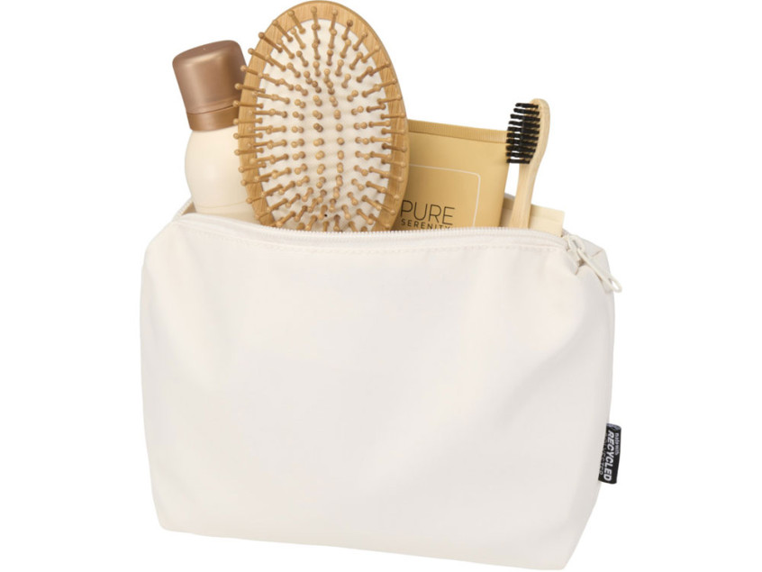 Дорожная косметичка Trip Aware™ из переработанных материалов — это компактное и простое решение для переноски повседневных вещей первой необходимости. Изготовленная из полиэстера с саржевым переплетением плотностью 290D, имея трикотажную основу и подкладку из материала RPET плотностью 210D/PU, она отличается лаконичным, минималистичным дизайном. В основном отделении достаточно места для туалетных принадлежностей и мелких предметов, что делает ее идеальным вариантом для коротких поездок или организованного хранения вещей на ходу. Каждая сумка также поставляется с индикатором Aware™. Эта инновационная функция позволяет пользователям отслеживать происхождение и путь своего товара с помощью QR-кода, повышая прозрачность цепочки поставок и способствуя более прочной связи между продуктом и процессом его производства. Объем: 2 литра.
