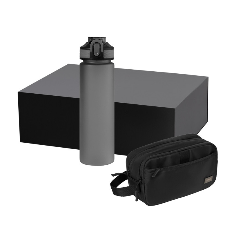 Подарочный набор Boston, Flip, черный (дорожная косметичка, бутылка)