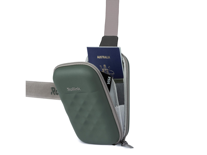 Дорожная сумочка Rollink Mini Bag Go темно-зеленого цвета Thyme. Размер 19,5x12x6 см. Сумка закрывается на молнию. Жесткие стенки сделаны из поликарбоната, что дает надежную защиту от порезов и несанкционированного доступа к вашим вещам и документам. Водозащищенная. Регулируемый ремень серого цвета. Внутри сумки есть многочисленные отделения и карманы для удобной организации кредитных карт, мелочи, водительских прав, ключей и многого другого. Объем 1,2 л. Вес 270 гр.