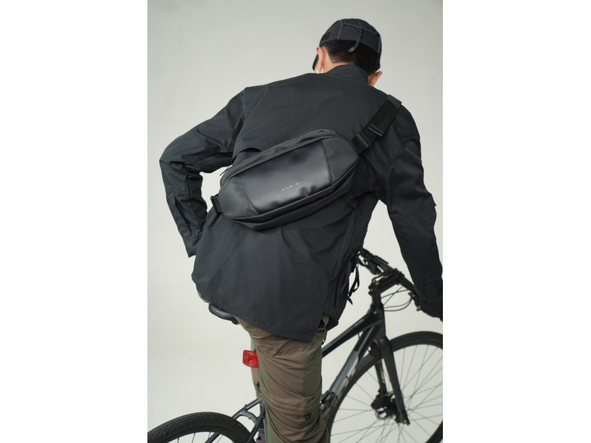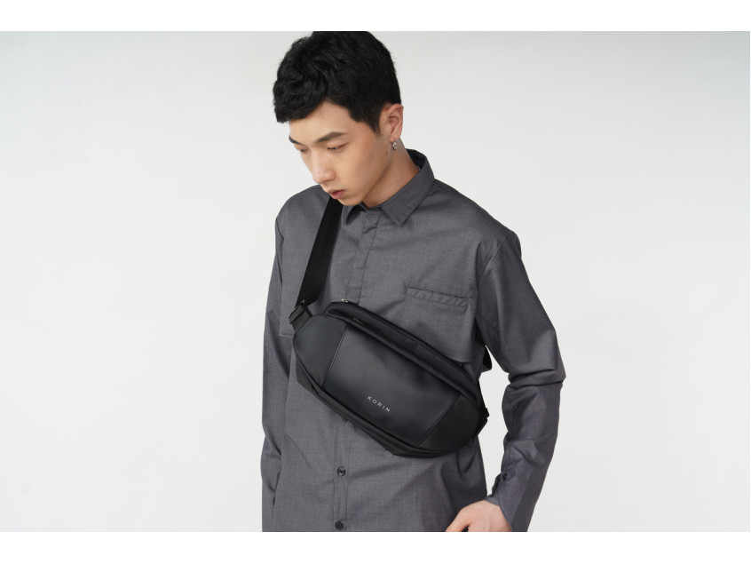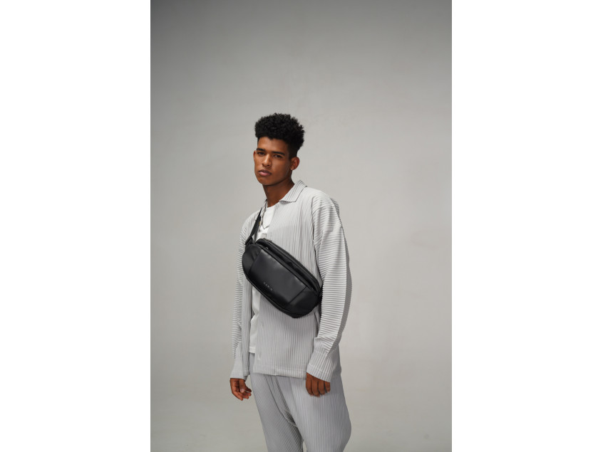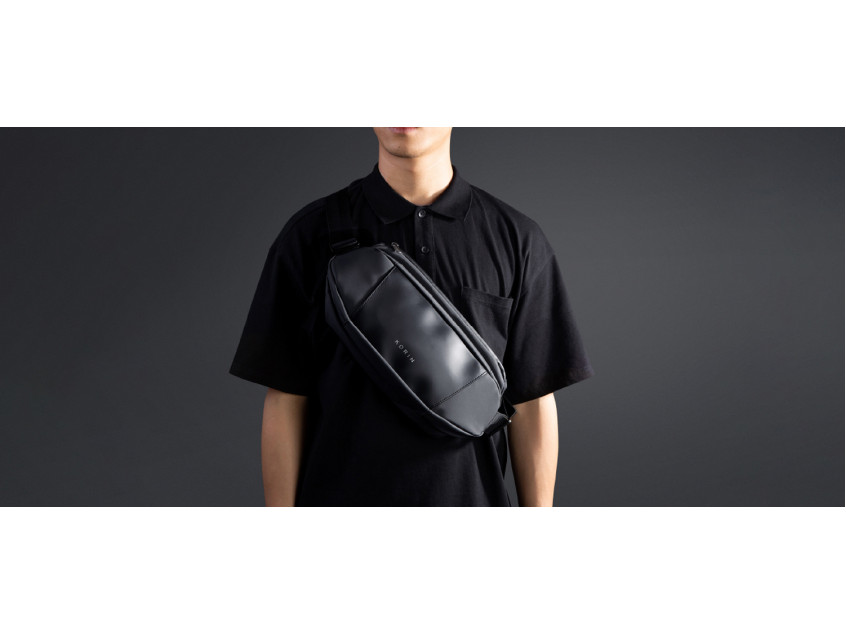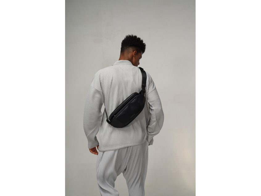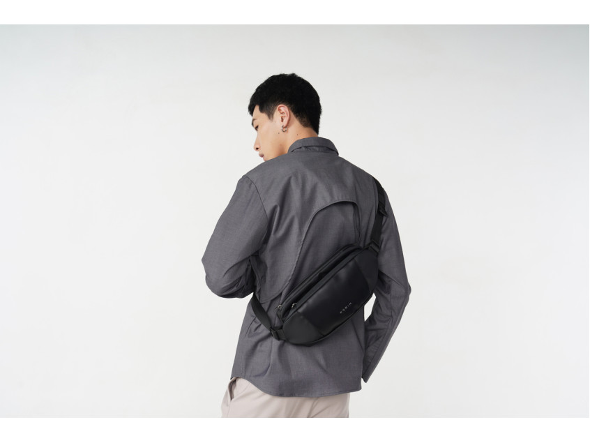 Модная эргономичная наплечная сумка FlipSling черного цвета. Размеры 32х16х10 см, объем 4,8 л, вес 370 гр. Сделана из прочного водоотталкивающего полиэстера в комбинации с искусственной кожей. Основное отделение 32х14,5х7 см разделено перегородкой на две части и закрывается на водонепроницаемую молнию YKK. Внешний карман 14х21 см с дополнительной специальной водозащитой для термокружки, бутылки с водой или зонта, также закрывается на водонепроницаемую молнию YKK. Карман на молнии с внутренней стороны сумки размером 12х19 см. Регулируемый ремень сумки с усовершенствованной сильной магнитной застежкой специальной конструкции, которая позволяет вам легко снять сумку с себя, в то же время надежно защищает ее от срывания. Часть ремня со специальным мягким уплотнителем, чтобы сумка не давила на плечо. Максимальная длина ремня с сумкой 162 см.