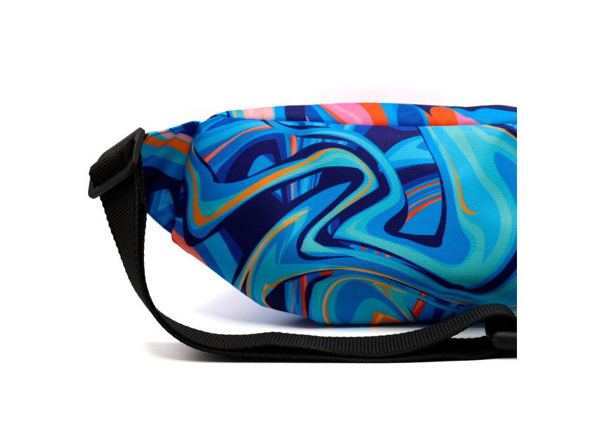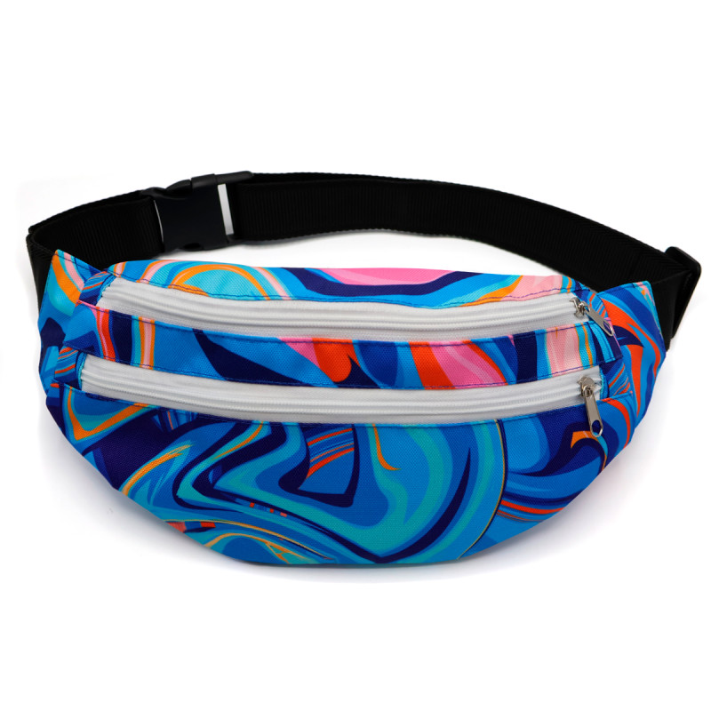 Полноцветная печать по всей поверхности от шва до шва. Возможны любые оттенки по CMYK: логотипы, надписи и разнообразные принты. Односторонняя сублимация. Вместительная модель с двумя отделениями. Регулируемый поясной ремень на защёлке-фастексе.