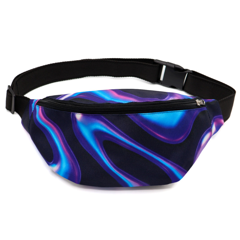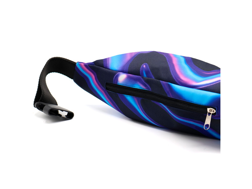 Полноцветная печать по всей поверхности от шва до шва. Возможны любые оттенки по CMYK: логотипы, надписи и разнообразные принты. Односторонняя сублимация. Вместительная поясная сумка закрывается на молнию и имеет карман на задней стенке. Регулируемый поясной ремень на защёлке-фастексе.