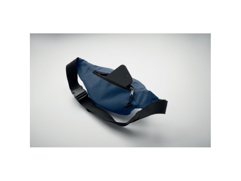 Поясная сумка из RPET 600D с основным отделением на молнии и потайным задним отделением на молнии.
