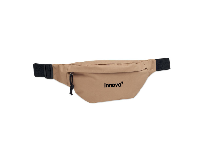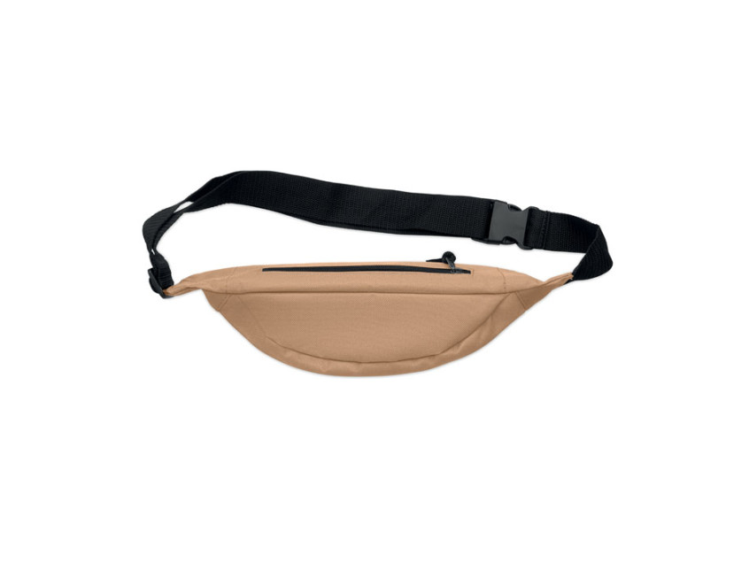 Поясная сумка из RPET 600D с основным отделением на молнии и потайным задним отделением на молнии.
