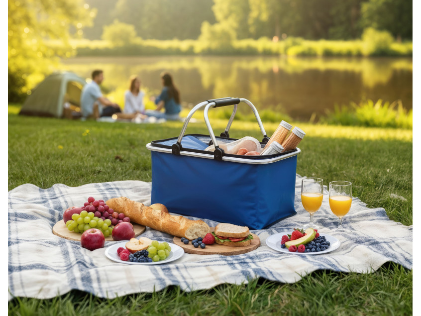 Корзина «Picnic» отличается большой вместительностью и термоизоляцией. Её удобно брать с собой на пикник, использовать для транспортировки и хранения продуктов. Она легко складывается и не занимает много места.