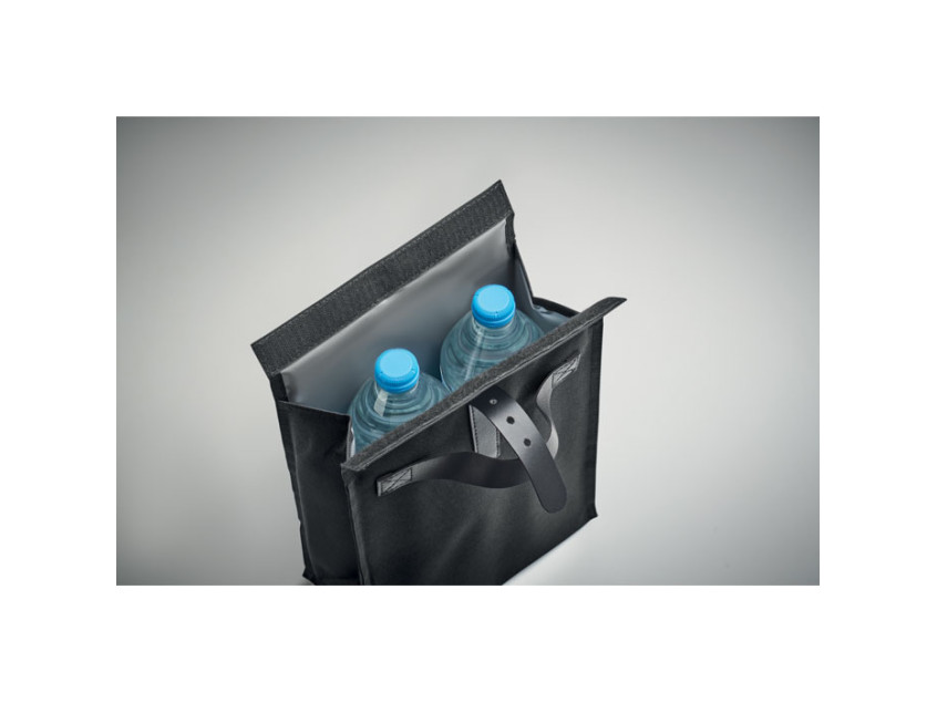 Сумка-холодильник из переработанного полиэстера 600D RPET с застежкой rolltop и ручкой из полиуретана. Изоляция: 3 мм пенополиэтилен с PEVA.