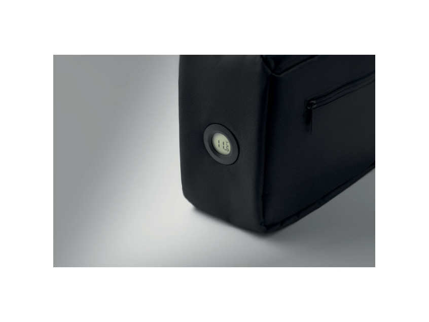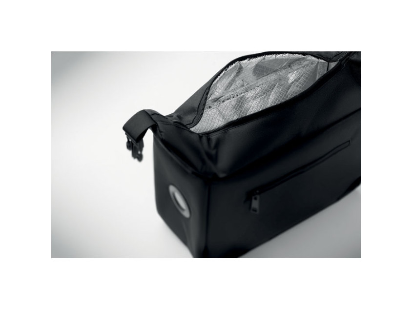Сумка-кулер с внутренним индикатором температуры, изготовлена из 600D RPET, изоляционная часть из пенополиэтилена и алюминиевой фольги. Основное отделение на молнии, боковой карман на молнии. Объем: 10 л.
