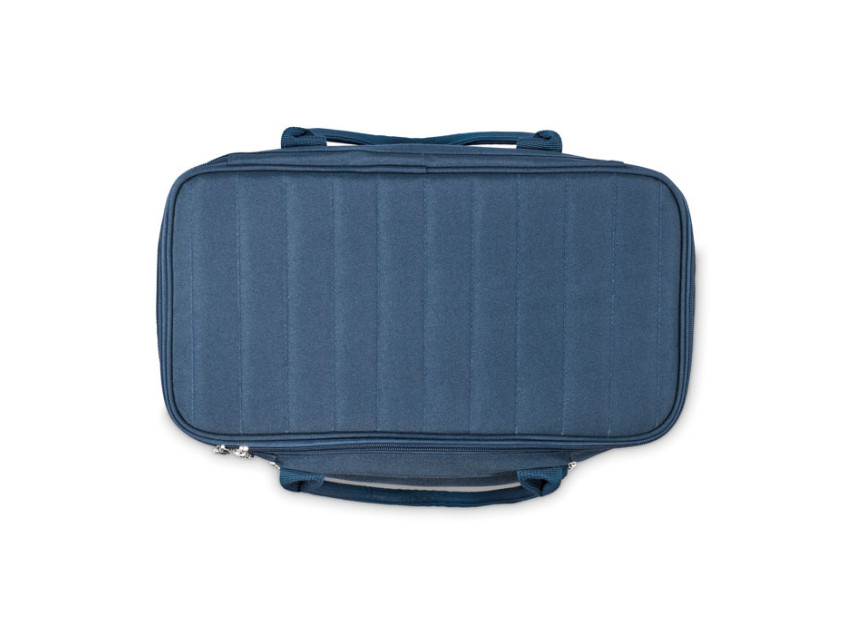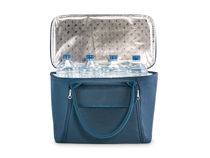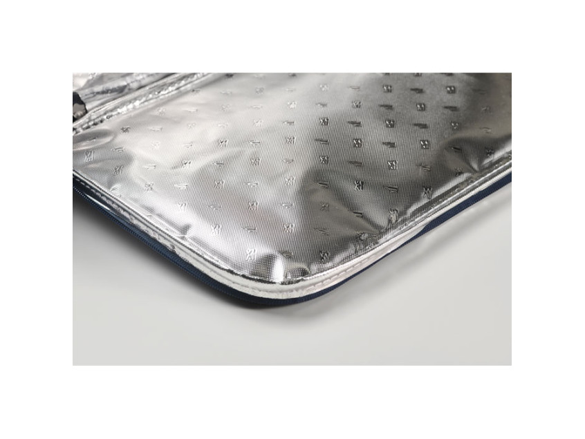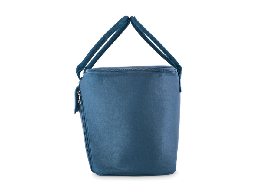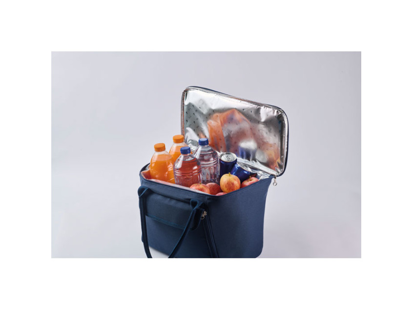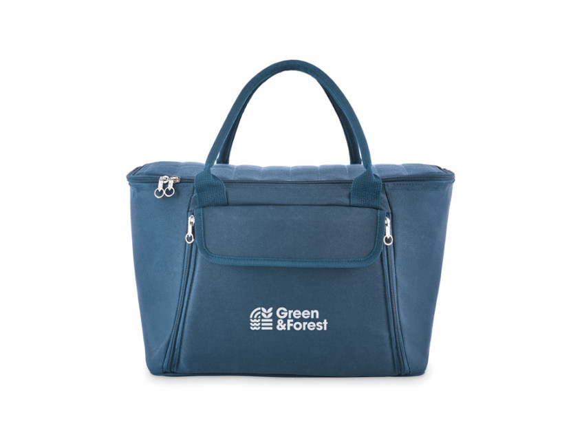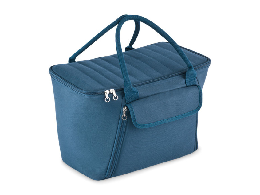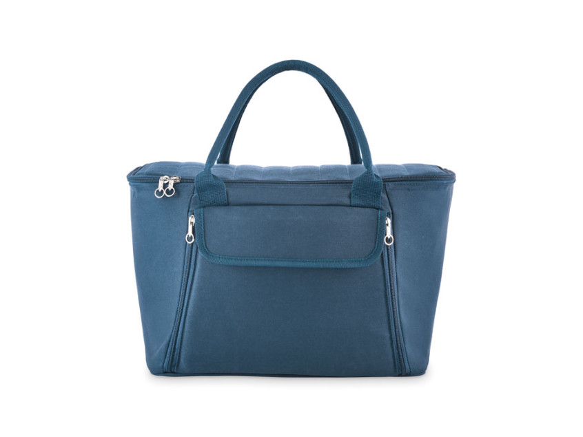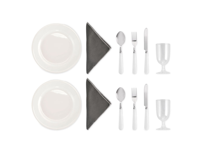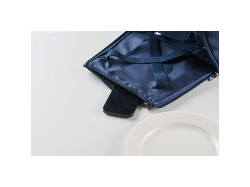Сумка-кулер для пикника из RPET 600D на 2 персоны с передним карманом на молнии. В комплекте столовые приборы из нержавеющей стали, 2 тарелки и 2 стакана из полистерола, 2 хлопковые салфетки. Объем: 18 л.