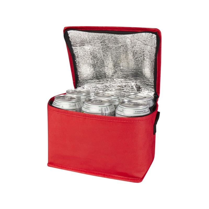 Сделанная из прочного и стойкого к разрывам нетканого RPET, сумка-холодильник Spectrum на 6 банок, изготовленная из переработанных материалов, подходит для хранения до 6 банок и оснащена удобной для переноски ручкой из тесьмы. Объем: 4 литр. GRS certified recycled polyester.