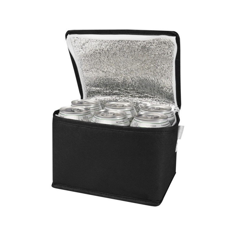Сделанная из прочного и стойкого к разрывам нетканого RPET, сумка-холодильник Spectrum на 6 банок, изготовленная из переработанных материалов, подходит для хранения до 6 банок и оснащена удобной для переноски ручкой из тесьмы. Объем: 4 литр. GRS certified recycled polyester.