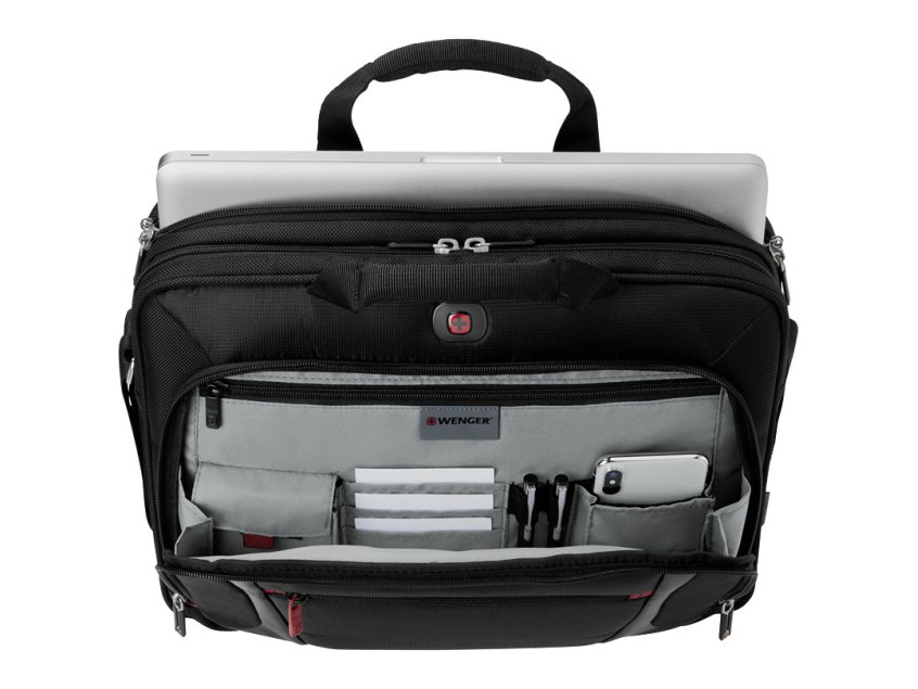 - Отделение с карманом-органайзером включает ключницу, многочисленные кармашки для пишущих принадлежностей, документов и карты памяти, карман для телефона