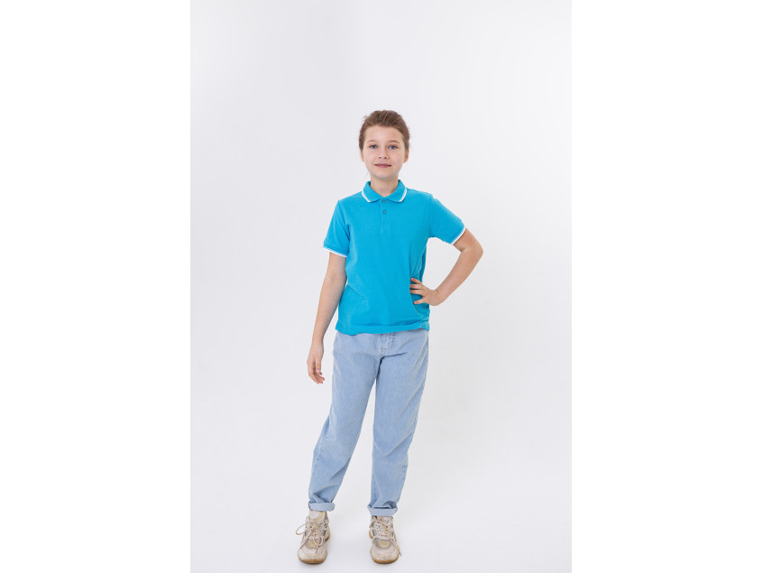 Рубашка поло детская STAN с окантовкой хлопок/полиэстер 185, 04TJ, Бирюзовый