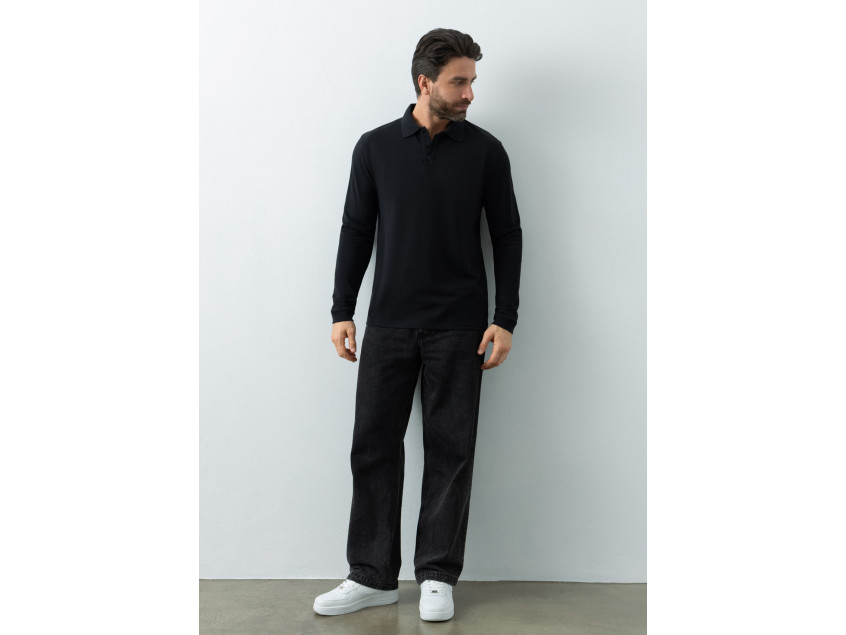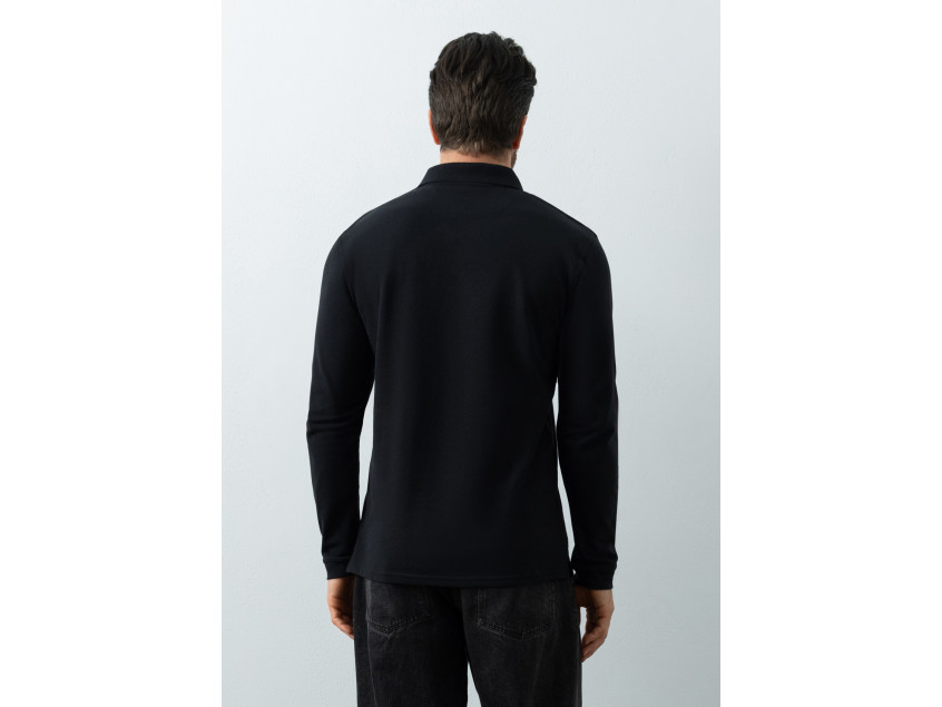 Рубашка поло унисекс STAN длинный рукав хлопок/полиэстер 185, 104S, Чёрный