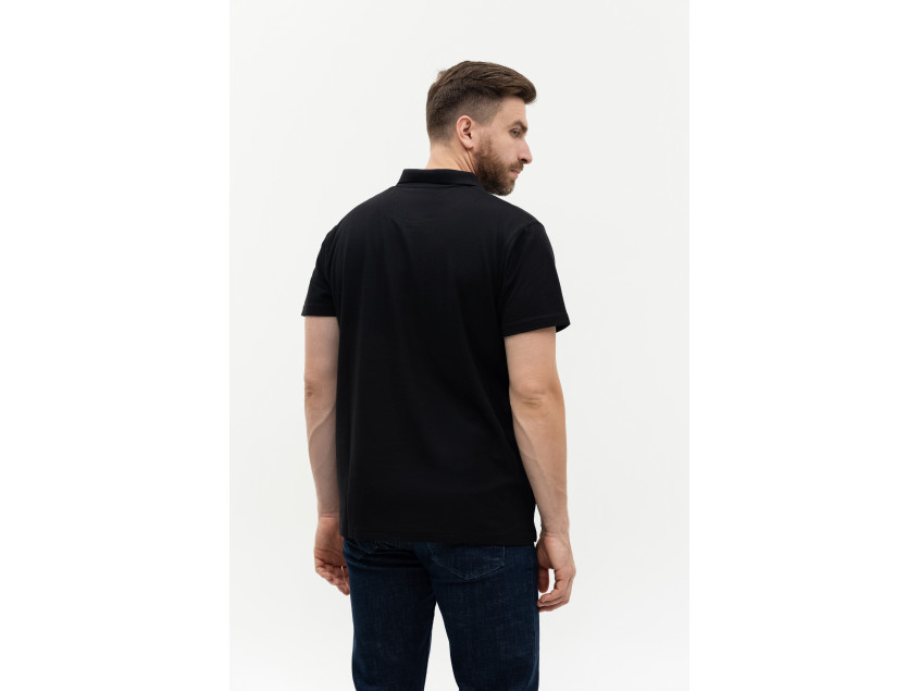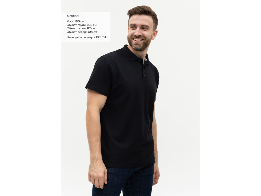 Поло выполнено из фактурной смесового ткани (65% хлопок, 35% полиэстер), благодаря чему изделие хорошо пропускает воздух и практически не мнется.