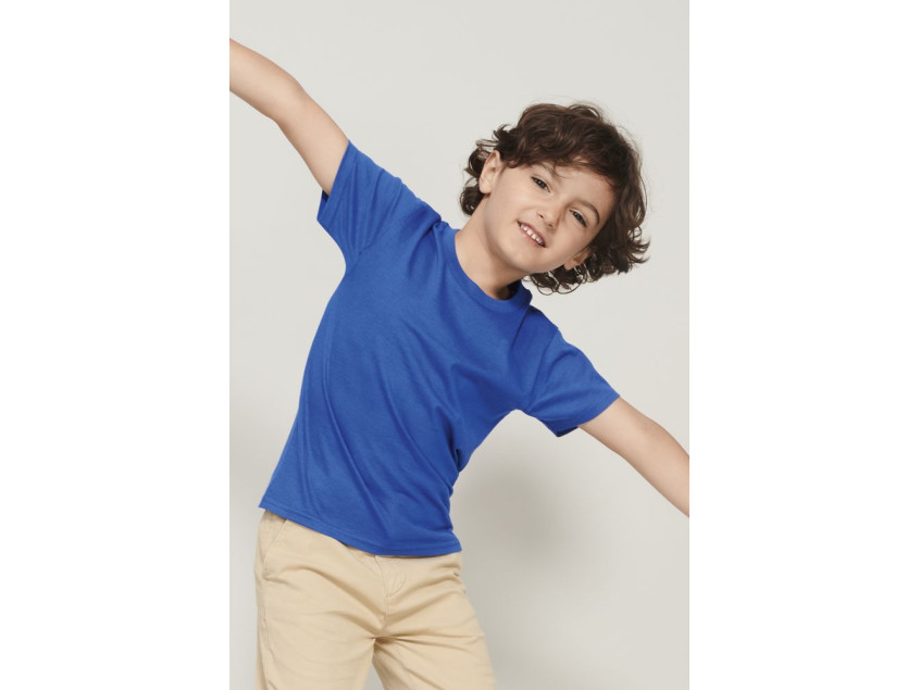 Детская кроеная облегающая футболка из органического хлопка с круглым вырезом.