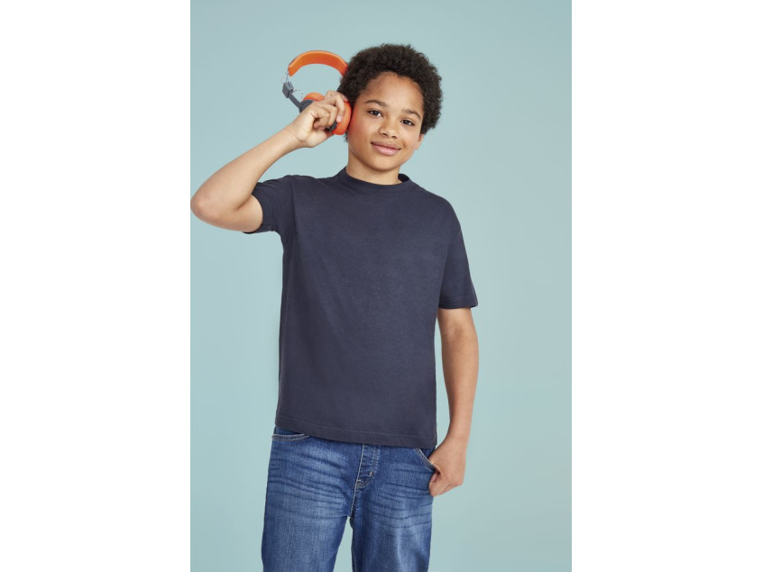 Классическая футболка с боковыми швами (4 года) или без боковых швов (с 6 лет), с укрепляющей тесьмой по вороту. Край ворота в резинку с эластаном. Двойная прострочка по низу, на рукавах и на вороте спереди.
